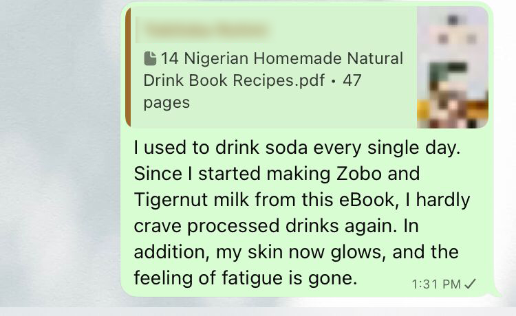 12+ Natural Drink Recipes eBook, which includes Zobo drink, Tigernut milk, Kunu, Fura da Nono, Parfait, Unsweetened Greek yoghurt and more. These recipes will help regulate blood pressure, improve digestion, help with weight loss, boost immunity and provide other health benefits.
